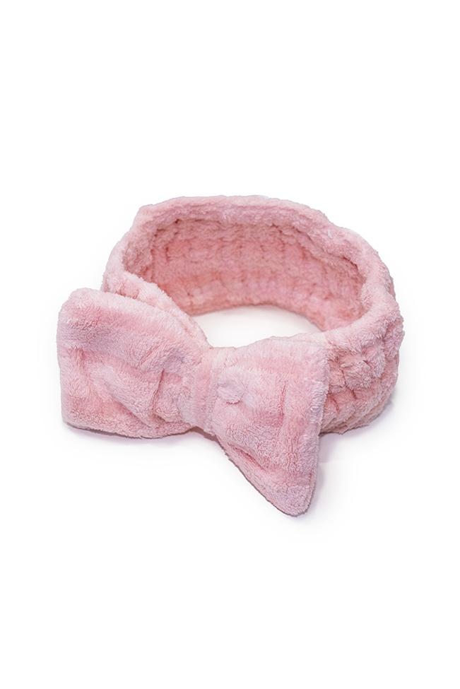 Headband ροζ κορδέλα με φιόγκο εξαιρετικά απαλή ιδανική για να κρατά μακριά τα μαλλιά σας ενώ απλώνετε το make up σας την αρχή της ημέρας ή για να ξεπλυθείτε και να κάνετε την περιποίηση σας το βράδυ. Η εφαρμογή του είναι one size και είναι ελαστική.