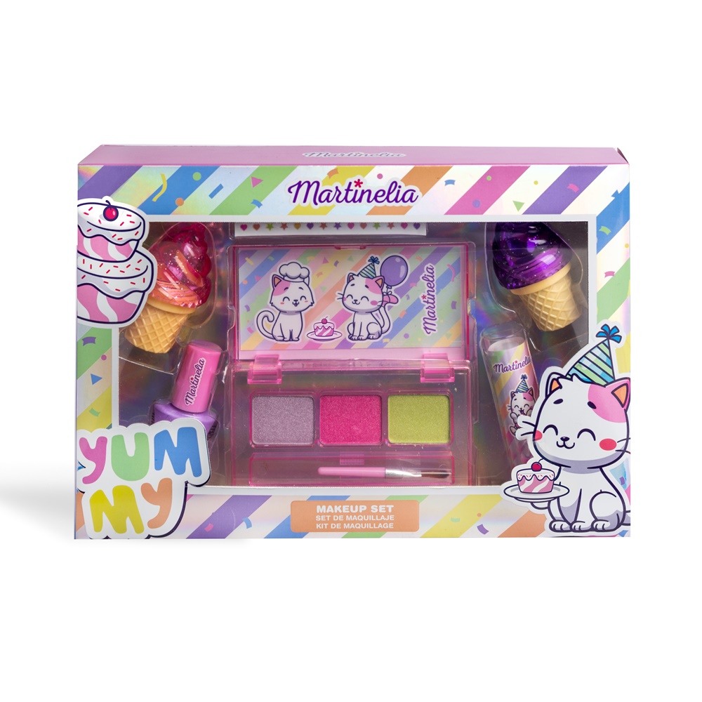 Martinelia Yummy Lips & Eyes Kit by FOLIA COSMETICS – σετ που περιέχει 1 υδατοδιαλυτό βερνίκι νυχιών, 2 lip gloss, 1 lip balm, stickers και 1 παλέτα σκιών 3 χρωμάτων.